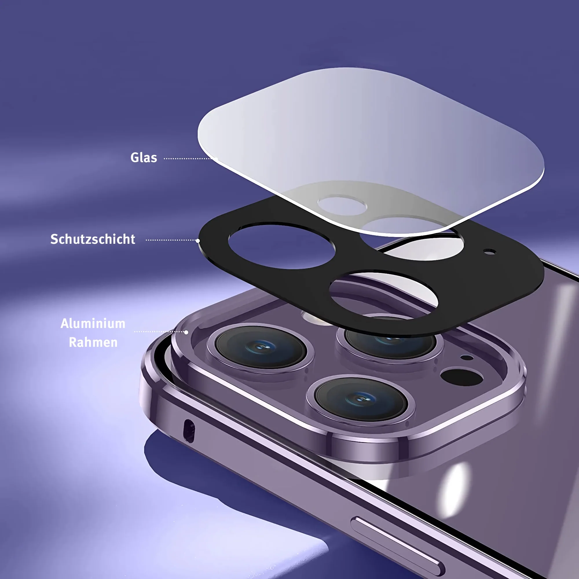 Besonders hervorzuheben ist der Komplettschutz deiner iPhone Kamera bestehend aus Aluminiumrahmen, Schutzplatte und kristallklarem Glas, damit du dir beim Ablegen des iPhones auf Tischen keine Gedanken mehr um Kratzer auf den Linsen machen musst.